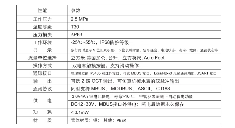 這是一款超聲波水表,專為用水計量結算而設計。具有測量精度高,超低耗電,工作穩(wěn)定可靠等優(yōu)點,適用于各種惡劣的工作環(huán)境,廣泛應用于城市供水,水資源管理農業(yè)灌溉,園林管理,工業(yè)生產(chǎn)等行業(yè)是用水管理技術的一次重大革新。